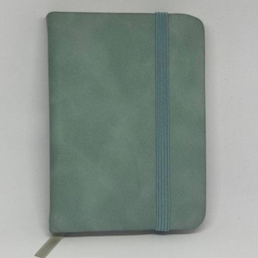 This 8 1/2" x 6" notebook includes lined pages with one ribbon page marker.