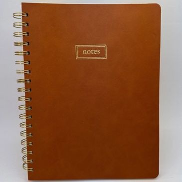 This 9 3/4" x 7 1/2" spiral notebook includes lined pages.